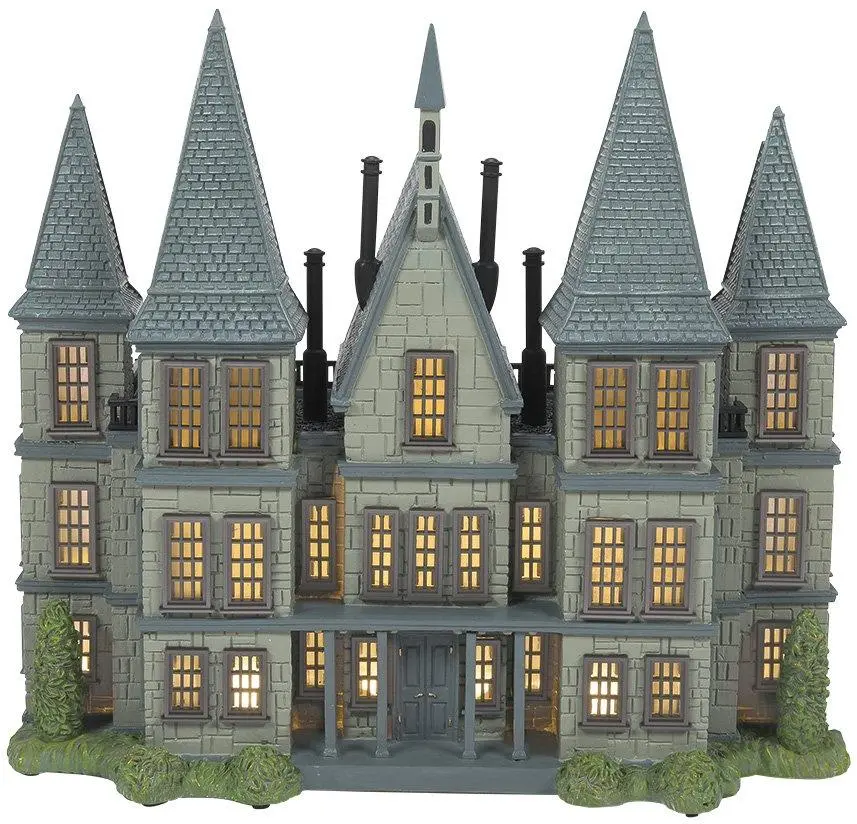 Malfoy Manor uit de Harry Potter Village-collectie van Department 56 is een indrukwekkend en gedetailleerd model van het iconische landgoed van de Malfoy-familie. Dit handgemaakte en met de hand beschilderde stuk brengt de magie van de tovenaarswereld tot leven. Het model wordt verlicht en werkt via een USB-kabel.