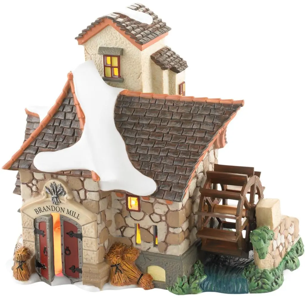 Onderdeel van de Dickens' Village-serie van Department 56. Victoriaans Engeland, waar veel van de tradities die we vandaag de dag vieren zijn ontstaan. De molenaar van Brandon Mill maalde graan voor zijn buren. Met de hand vervaardigd en beschilderd porseleinen verlicht gebouw. Het waterrad draait ook. Werkt via een USB-stroomkabel.